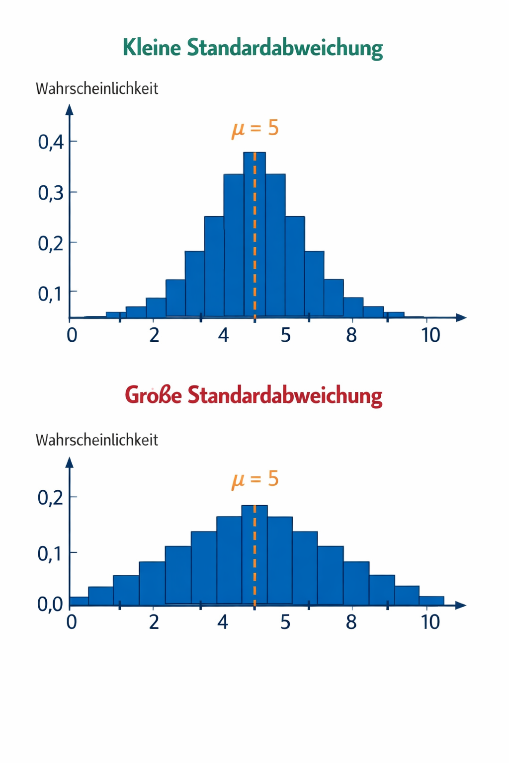Für den Schulkontext ist all das nicht rechenrelevant – aber es erklärt, warum Histogramme so aussehen, wie sie aussehen, und warum Begriffe wie Erwartungswert, Streuung und kumulierte Wahrscheinlichkeit überhaupt sinnvoll sind.