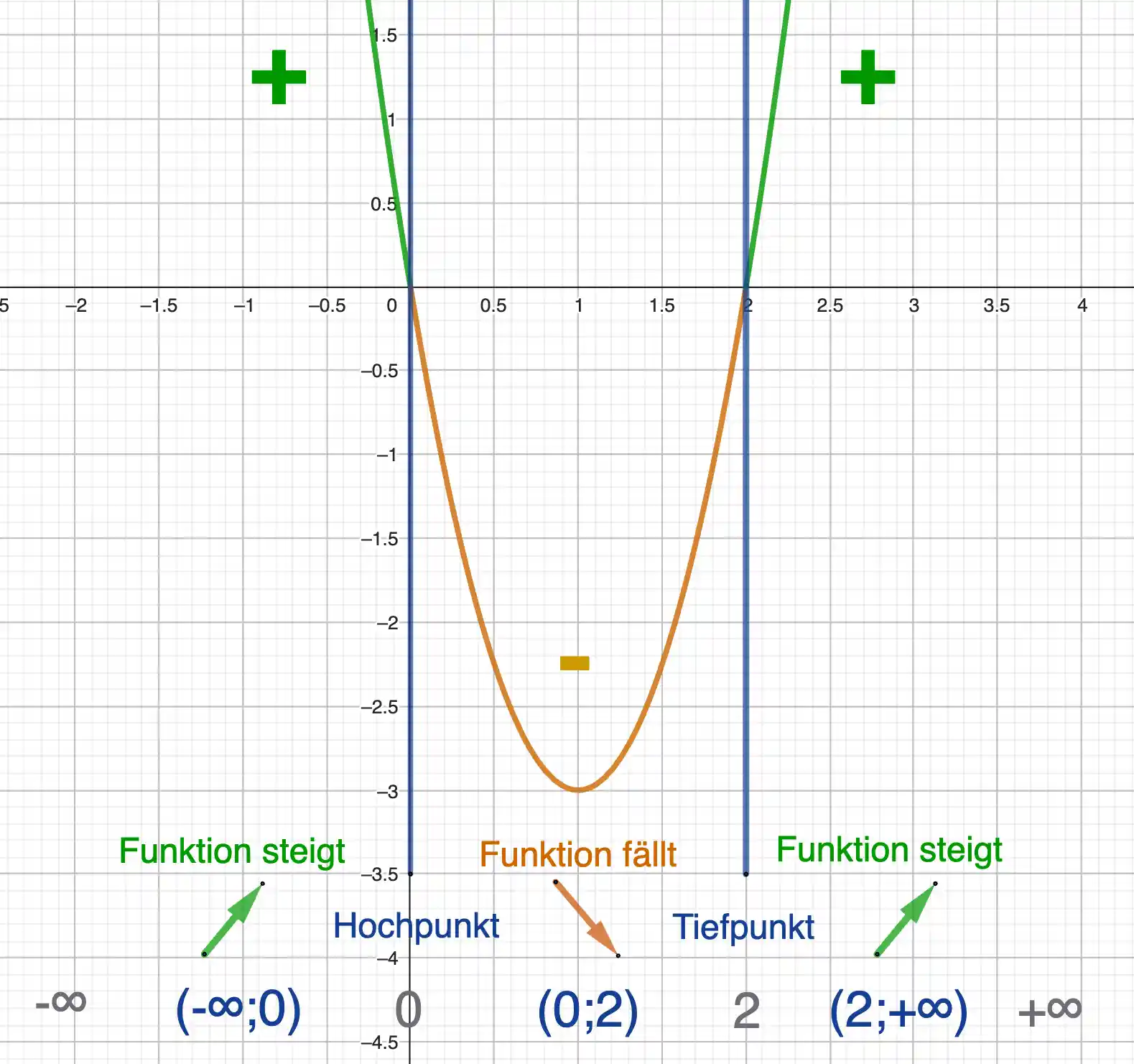 2. Woran erkennt man, ob ein Punkt ein Hoch- oder Tiefpunkt ist?